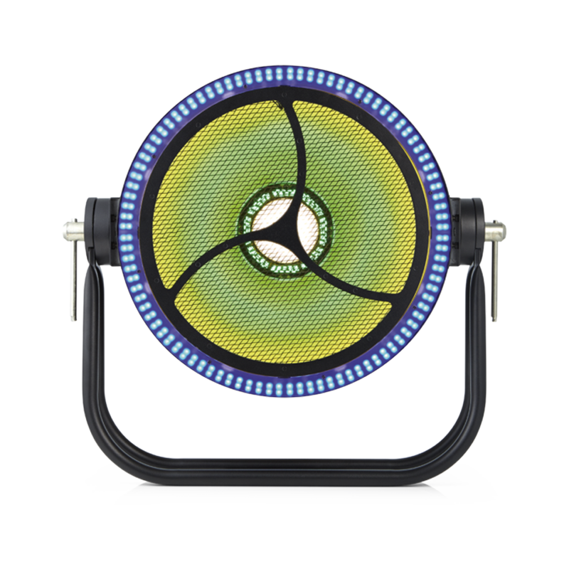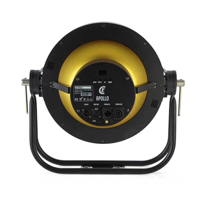 Der CLF Apollo ist ein Retro-Effekt mit separaten steuerbaren RGB LED-Segmenten. Ein warmweißer/bernsteinfarbener LED-Mitteleffekt wird von acht RGB-Segmenten umgeben, die den goldenen Innenreflektor beleuchten. Zusätzlich bieten acht verschiedene RGB-Segmente rund um den parabolischen Reflektor weitere Gestaltungsmöglichkeiten. Der Effekt kombiniert einen Glühlampen-Look mit modernen farbigen LED-Animationseffekten. Vorprogrammierte Pixeleffekte ermöglichen beeindruckende Animationen, während verschiedene DMX-Modi präzise Steuerung für umfassende Lichteffekte bieten.